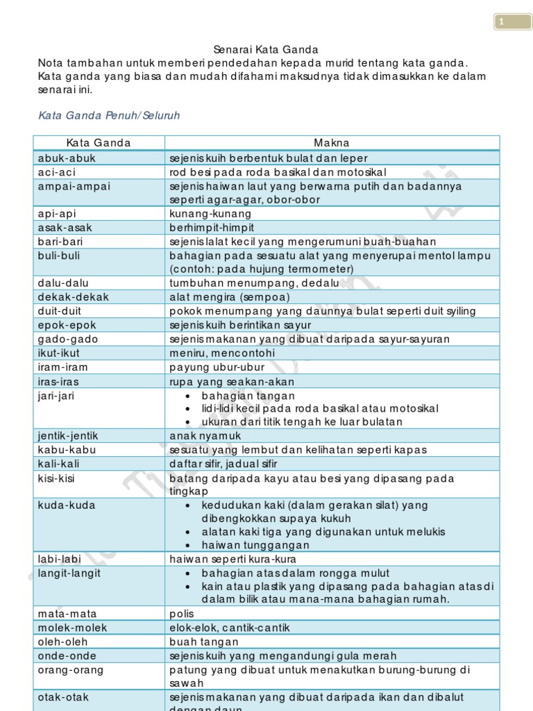 Latihan 1 Kata Ganda Berentak Pdf