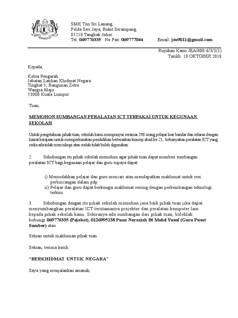 Surat Mohon Sumbangan Peralatan Ict Pdf